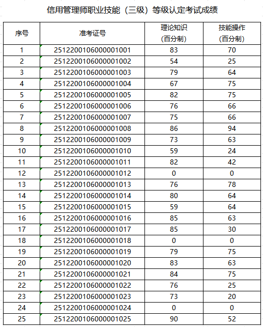 附件:信用管理师职业技能(三级)等级认定考试成绩